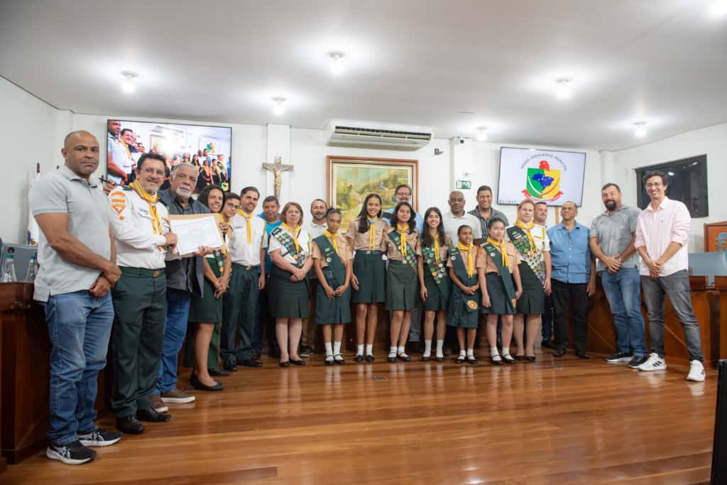 Momento especial: entrega da moção nº 301/2025 de autoria do Vereador Mário Alves, e apoiada pelo Vereadores, aos membros do Clube de Desbravadores Água da Vida de Caxambu, ministério da Igreja Adventista de Caxambu.
